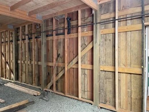The 54 Green Acres team completely re-did the interior of the indoor facility. Under the guidance of Matt Iarussi, the rustic barn was first stripped down to the studs.
