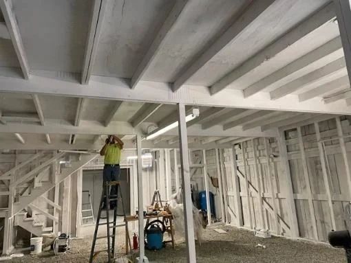 All of the bare wood was coated with an antimicrobial paint. The picture below shows the barn before the insulation and walls went up. All of the structural bare wood was coated.